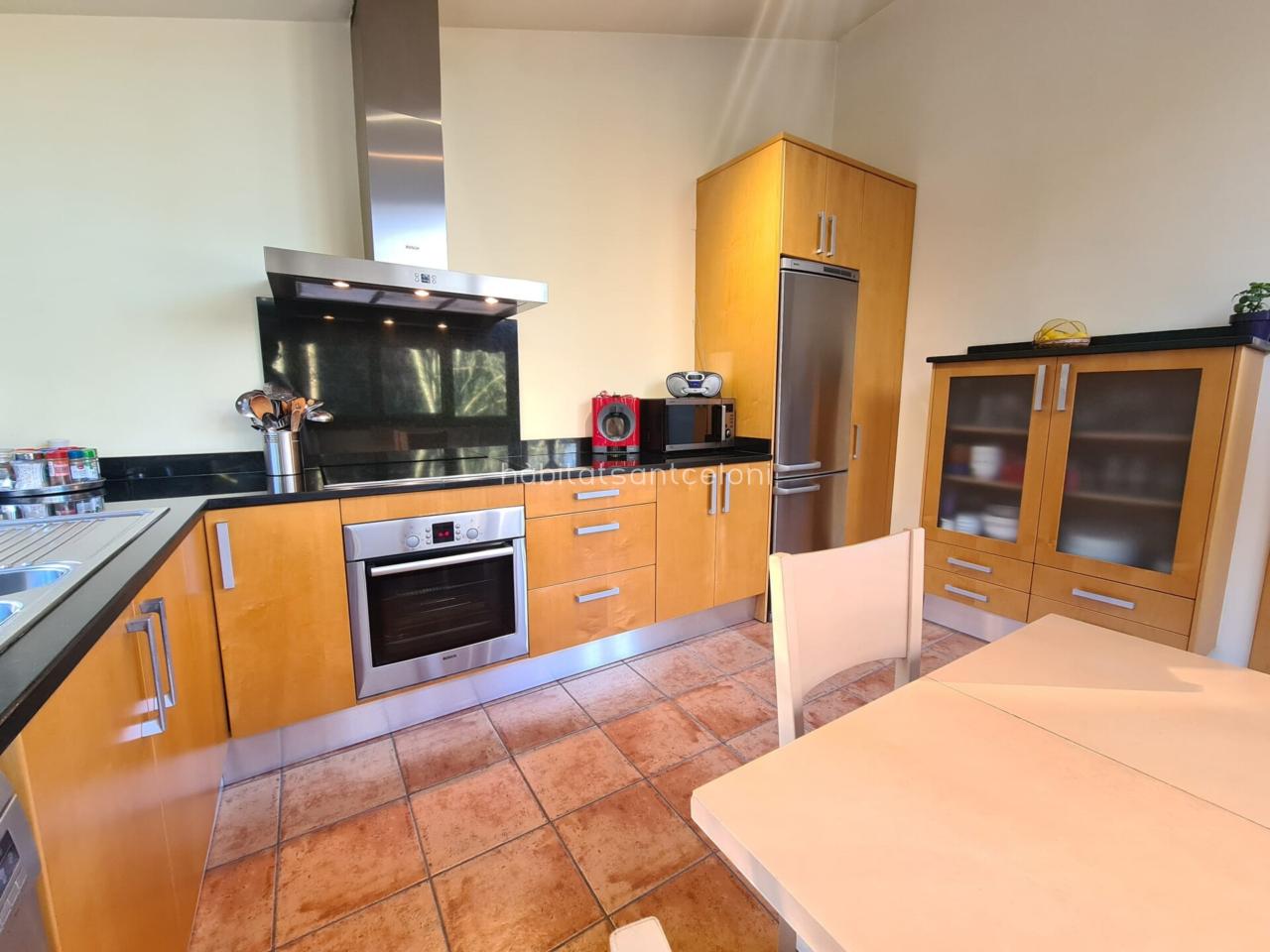 Cocina independiente totalmente reformada, moderna, funcional y con salida directa a una terraza de 50 m². Un espacio ideal para desayunar al aire libre, organizar comidas con amigos o simplemente relajarse con vistas al entorno.