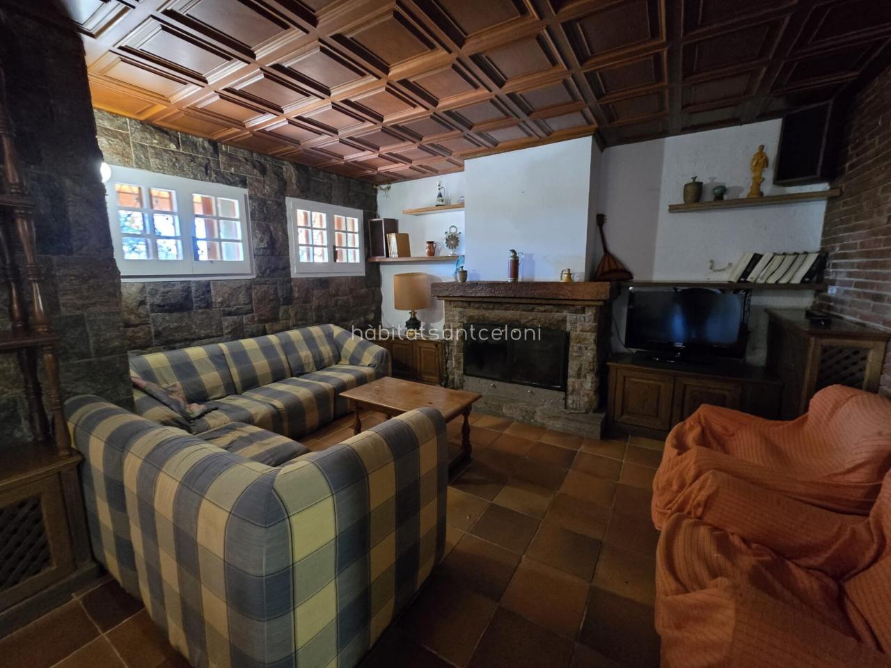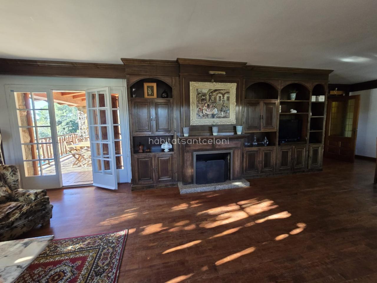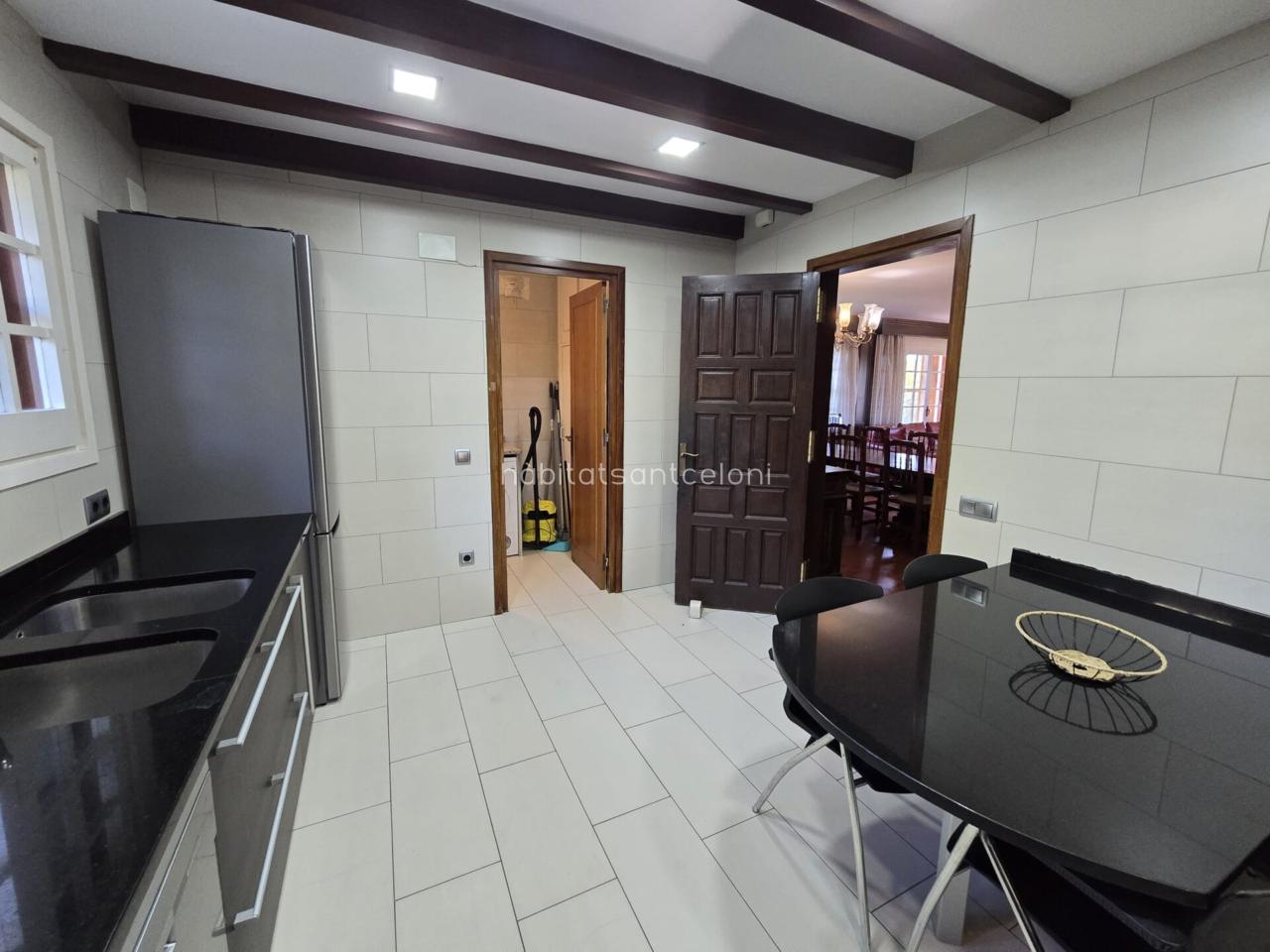 Dispone de una amplia cocina con zona de lavadero, 1 aseo, 2 habitaciones, 1 despacho y un gran salón-comedor con chimenea y techos de madera, muy luminoso, con salida directa a una terraza cubierta completamente equipada, ideal para reuniones y momentos de relax con vistas al jardín.